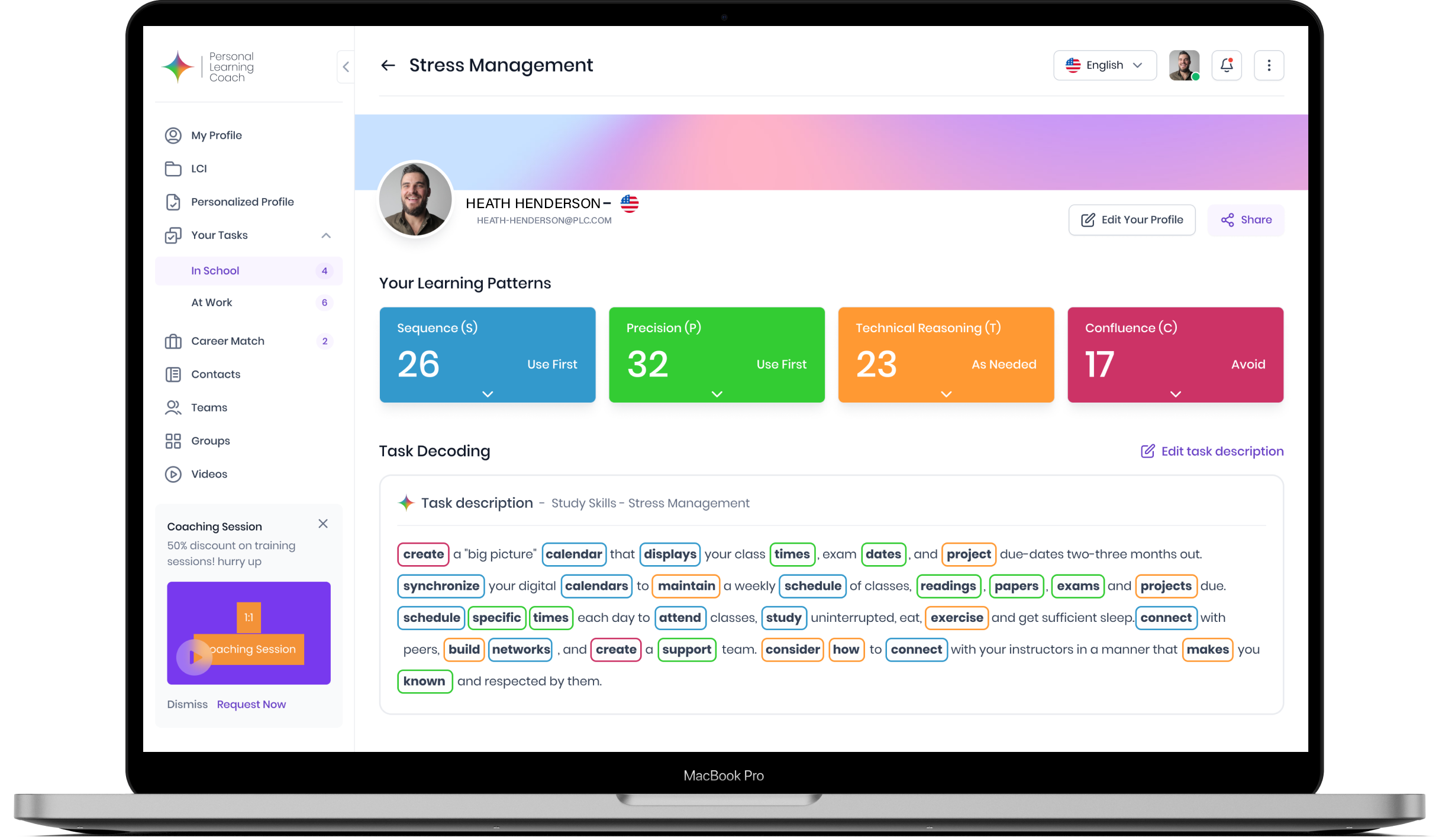The PLC increases your ability to accomplish a task or assignment by breaking it into small, understandable segments, and then generating strategies personalized to match your unique way of learning .